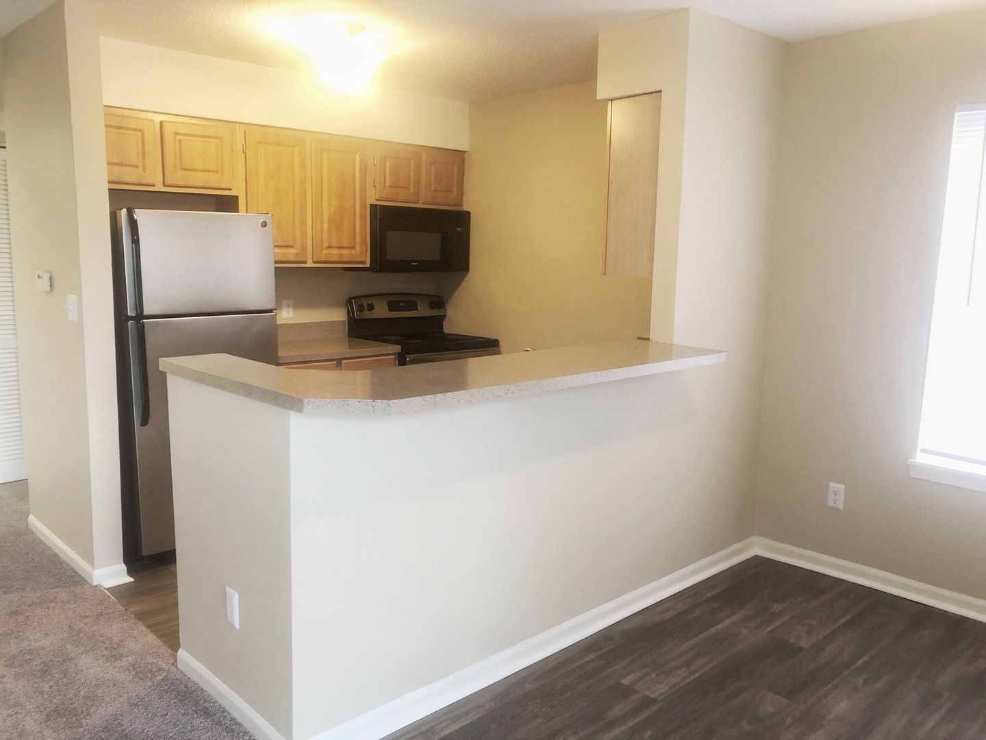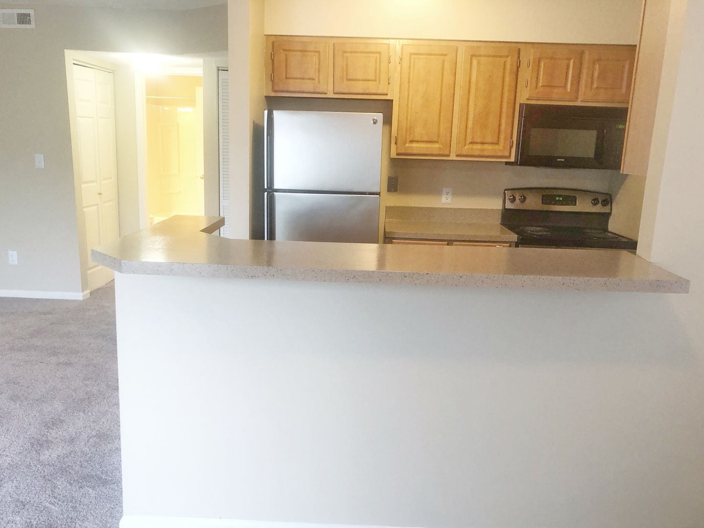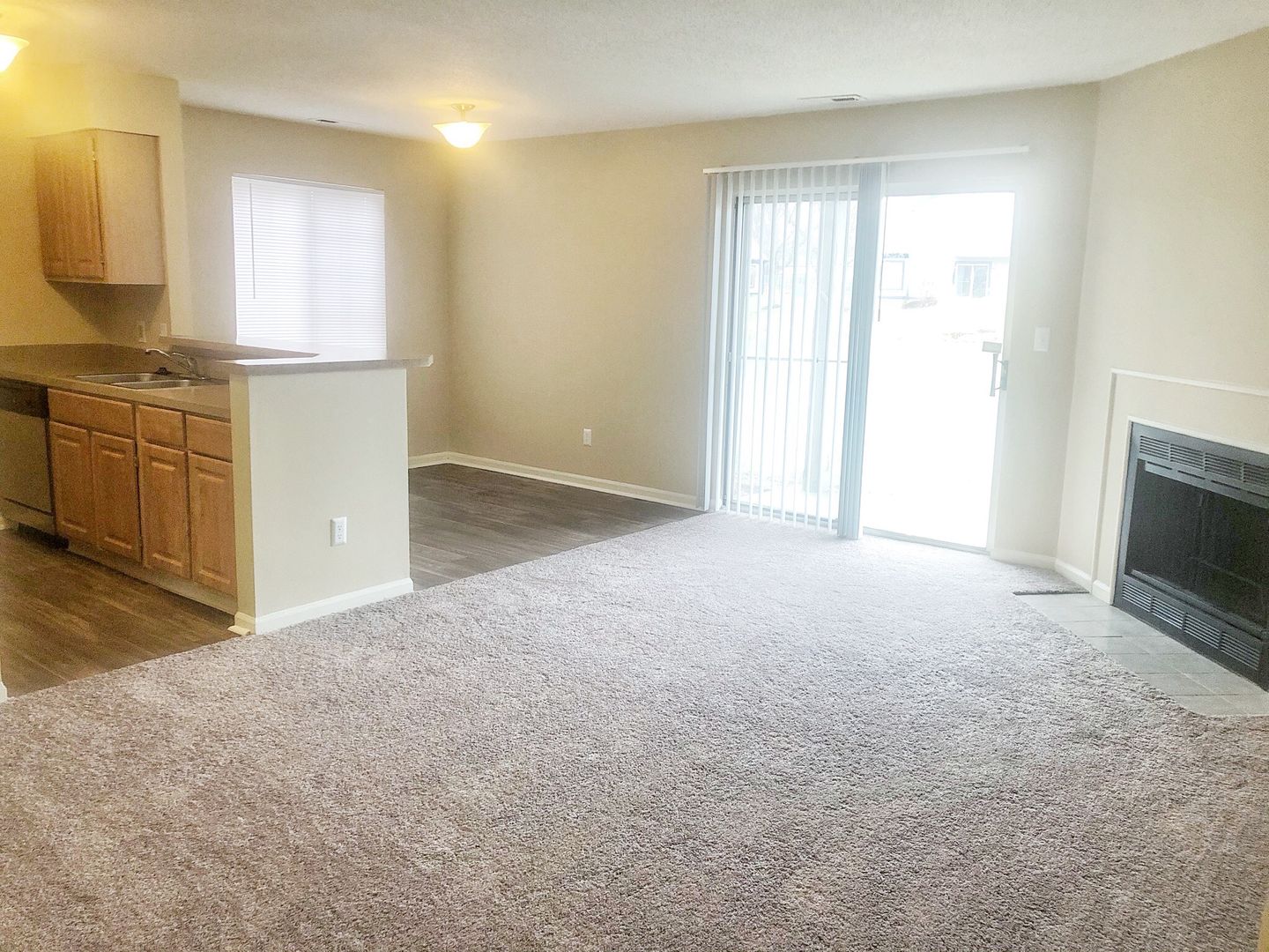 Comfortable floor plan with an open kitchen with view of the corner wood burning fireplace, separate dining area, walk through closet to master bedroom, 14 ft. vaulted ceiling in 2nd bedroom, 8 ft interior storage, washer /dryer connections, stainless steel appliances and private entrance!